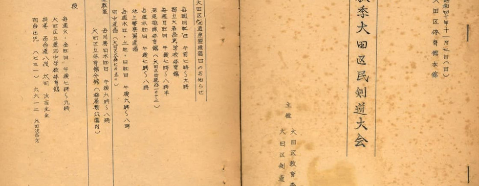 【昭和40年秋季大田区大会プログラム】otakendorenmei2022年12月22日読了時間: 1分1965年(昭和40年)に開催されました「大田区秋季剣道大会」の、プログラム冊子を掲載いたします。大田区剣道連盟の歴史を知る資料として、ぜひご覧ください。PDFファイルは下記よりダウンロードください。ota_40th.pdfダウンロード:PDF • 490KB